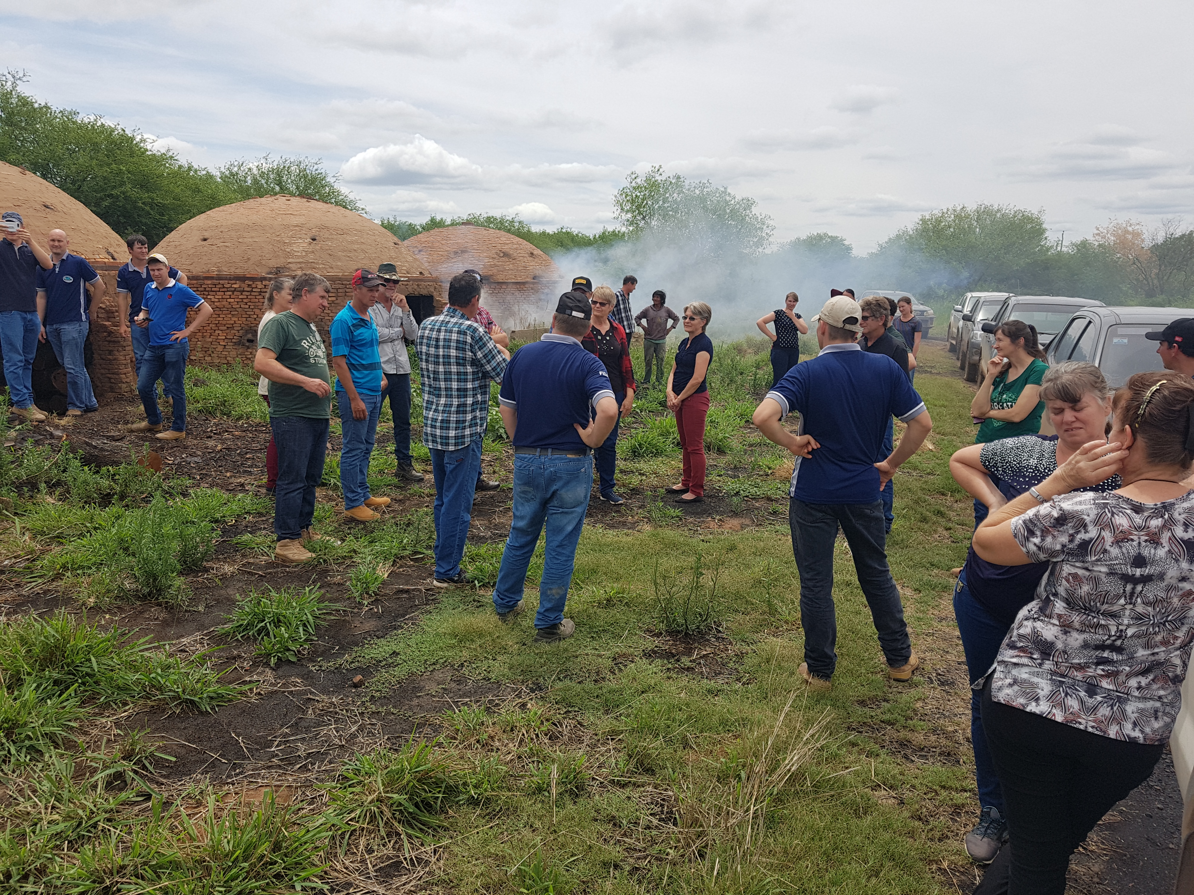 Después de la presentación de la Comunidad Armonía a cargo del asesor Heinrich Reimer y del almuerzo, el grupo hizo una recorrida por las instalaciones comunitaritas como los depósitos, oficina, maquinaria, almacén y el proceso de producción de carbón vegetal.