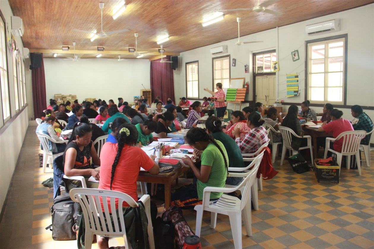 La semana de capacitación para maestras de Ed. Inicial tiene como objetivo preparar a estas para el año lectivo con el material didáctico necesario para la impartición de clases. Las maestras son, en su mayoría, madres que fueron electas por los integrantes de las aldeas para enseñar a los/as niños/as entre 3 a 5 años de su aldea respectiva. De esta manera, se pretende que esta semana envista a las maestras con las herramientas necesarias para la enseñanza de los/as niños/as.